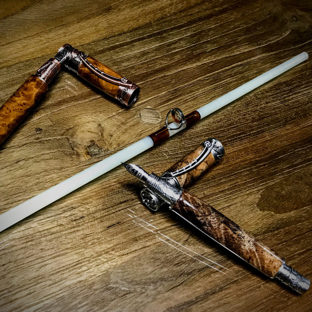 The Fish On! Fly Fish Pen takes your passion of fly fishing back to your office or home, even the lodge. The pen, like the popular ballpoint twist features a fly rod clip which aligns with the fly line reeling in a fish. The tip features the quiet scene of a day on the river.