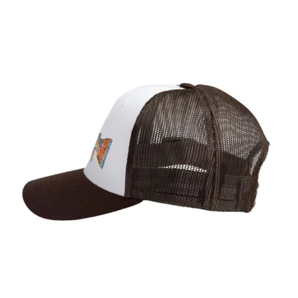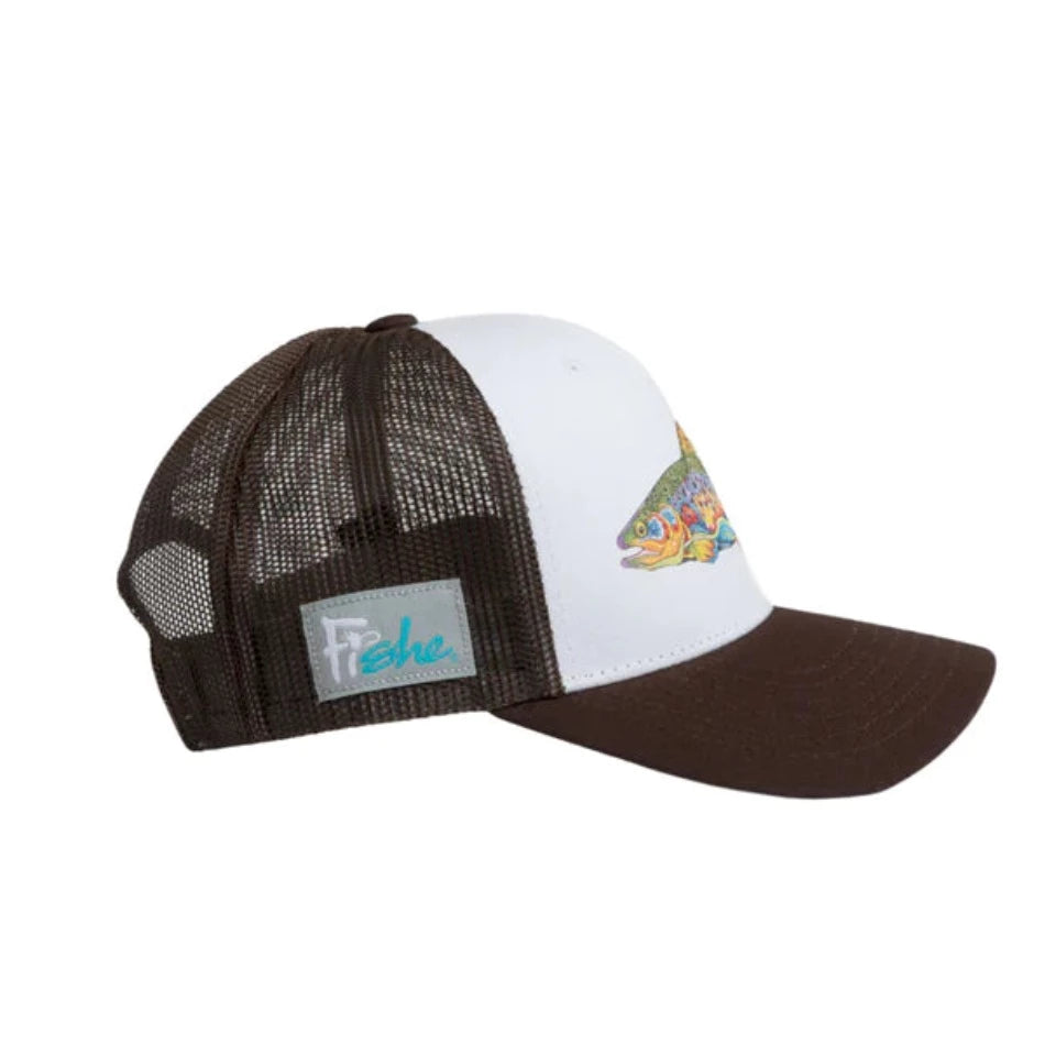 Unbound Brown Trucker Hat - The Perfect Catch for Your Head! Are you tired of hats that can't keep up with your fishing adventures? Look no further than the Unbound Brown Trucker Hat from Fishe® Wear. With its mid-profile fit and adjustable snapback closure, this hat is designed to stay on your head no matter where your fishing takes you. The mesh back keeps you cool on hot days on the water, while the hard buckram ensures the hat holds its shape. Whether you're reeling in a big catch or just relaxing by the lake, this hat is the perfect companion for any fishing enthusiast. One size fits all, so grab yours today and make every day a great catch!