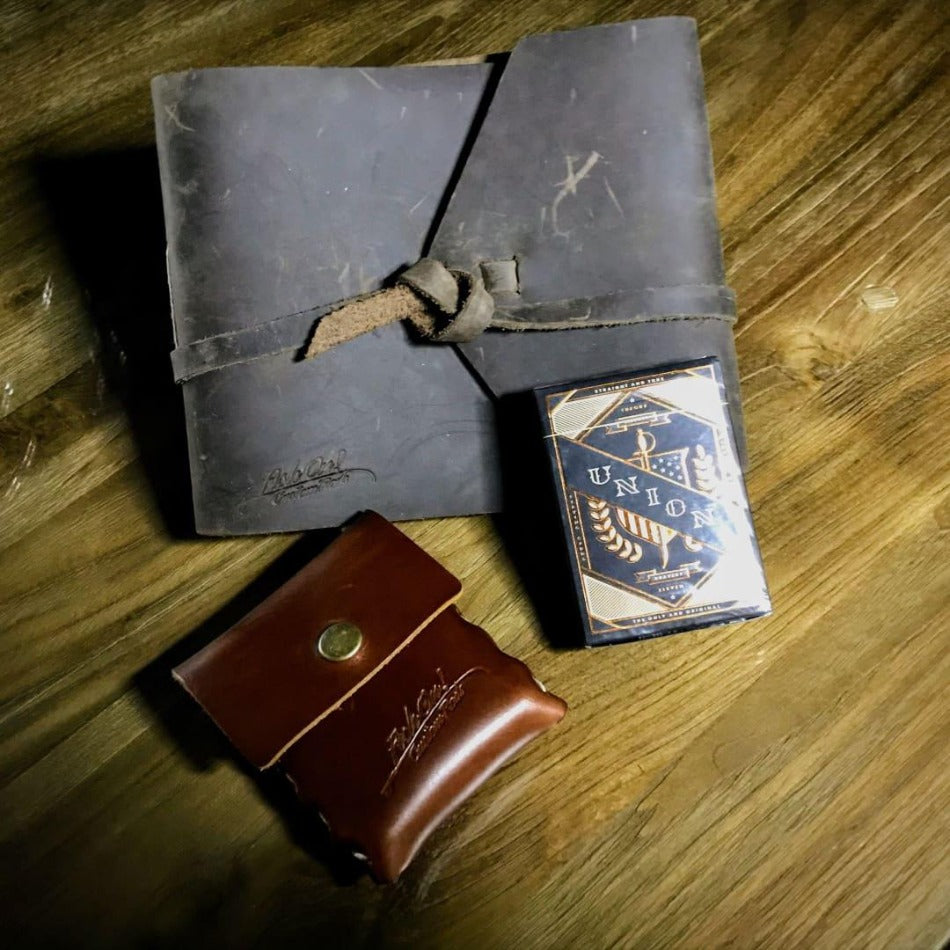 Regular price $25.00 USDA weekend at the hunting club isn't complete without a boisterous game of cards. This hand-stitched leather case includes a pack of Union Playing Cards which were inspired by and depict symbols of the American Revolution and were made in the USA by top card manufacturer, Theory 11.