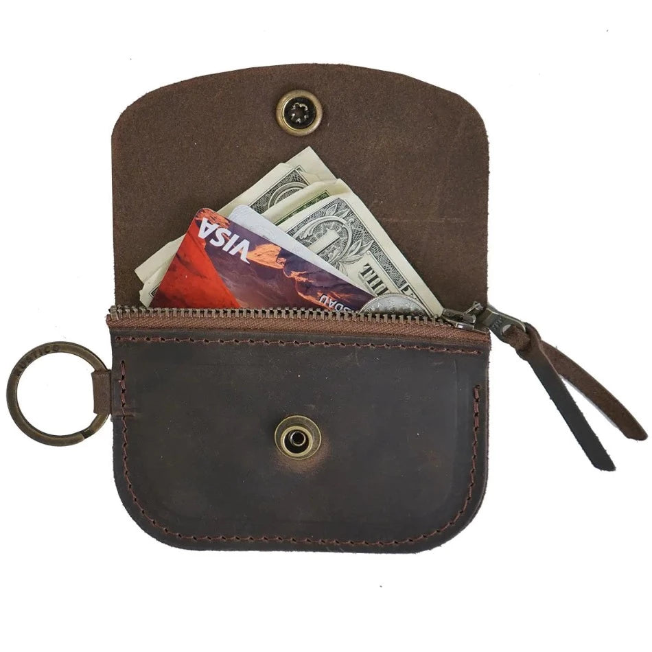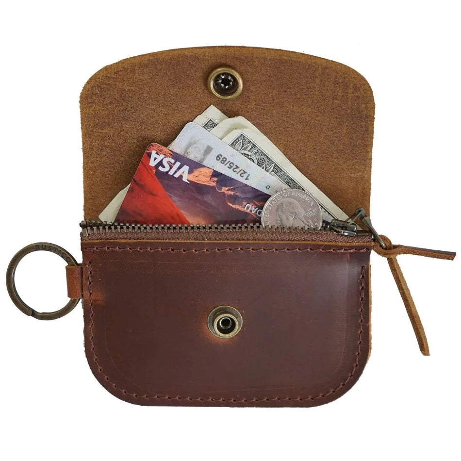 Regular price $35.00 USDThe Anchor wallet is crafted with top-grain leather and antique brass hardware, along with precise machine stitching. It includes a pocket that fits 5-7 cards or a few folded bills and a zippered coin pocket with a leather pull.