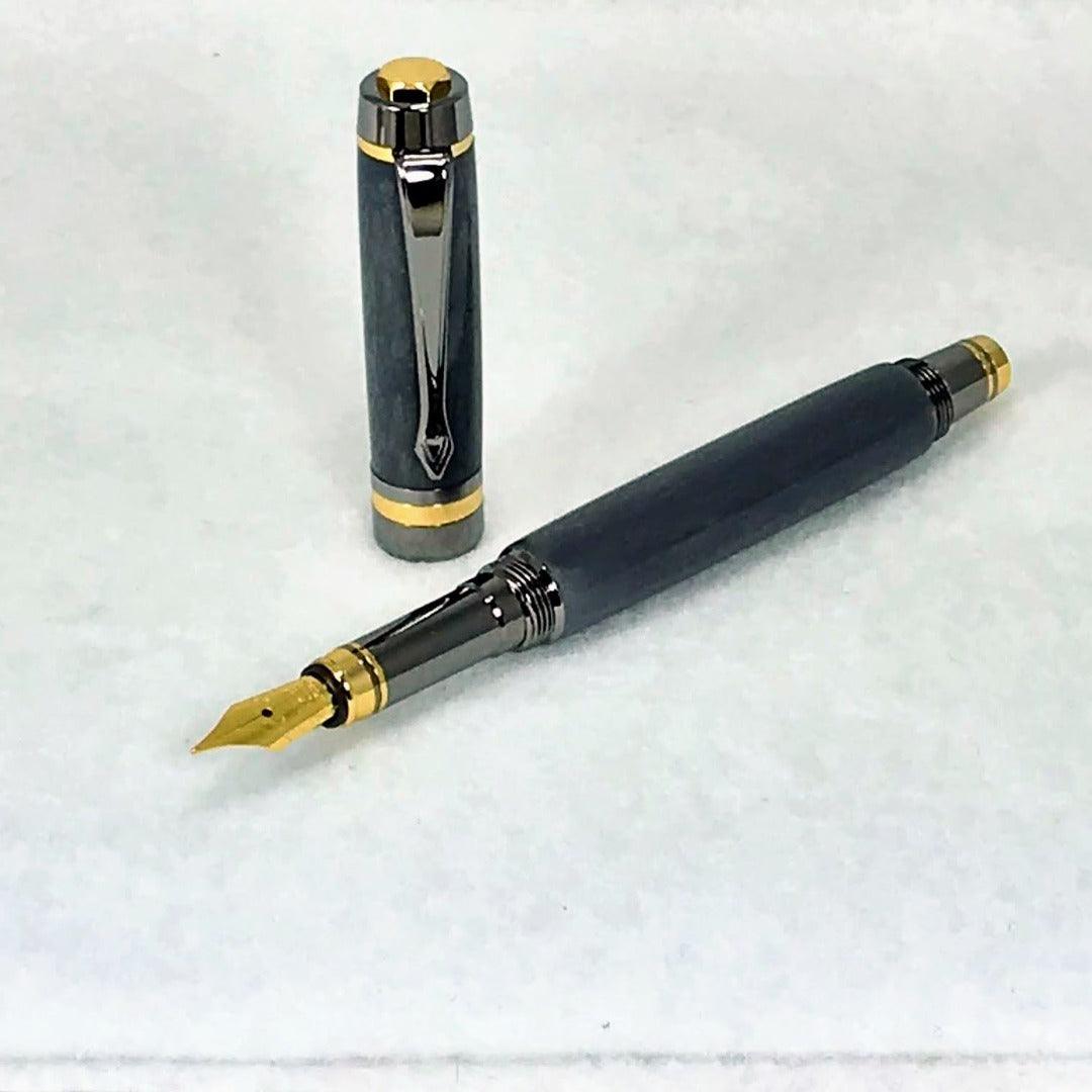 The Classic Elite 2 is a great desktop fountain pen. The balance, size is perfect. The 24k gold and gunmetal make it a handsome writing instrument. The fountain pen is postable and comes with a black refill cartridge.
