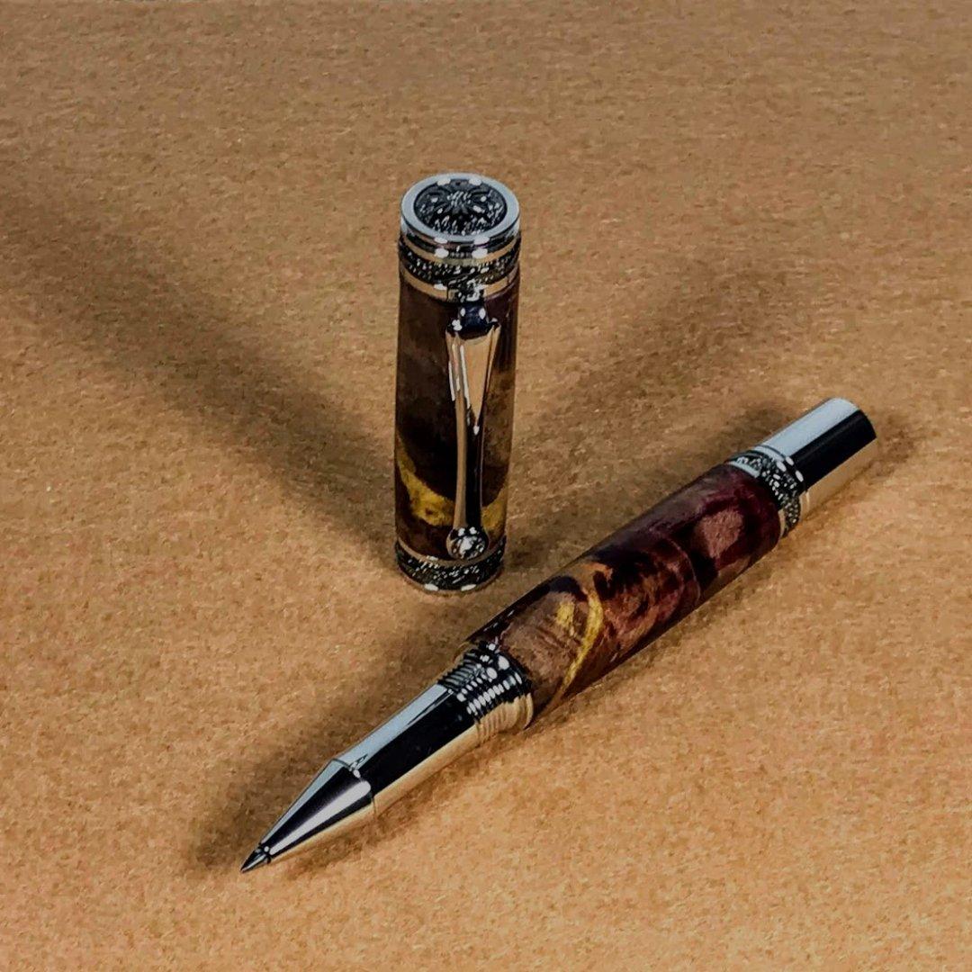 Majestic Rollerball- Rhodium & Black Ti Maple Burl