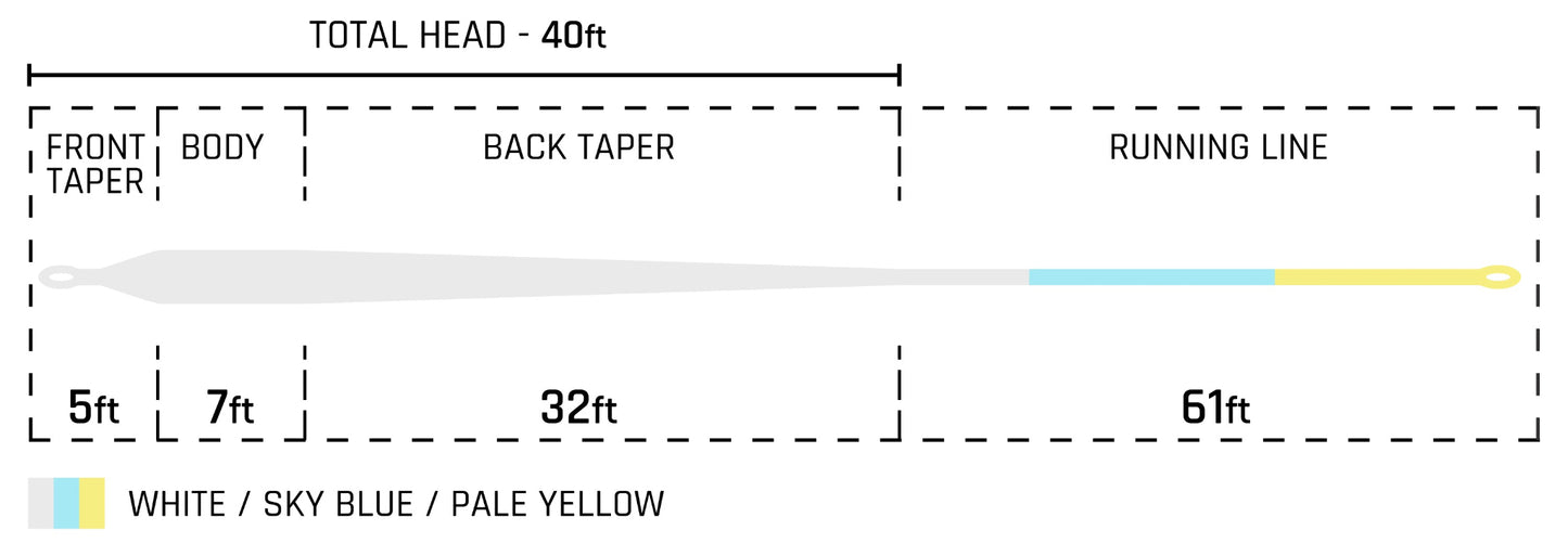 The Bonefish line features an aggressive taper that loads rods easily for close shots. Elongated rear taper provides excellent loop control when you need to carry line for long range targets.